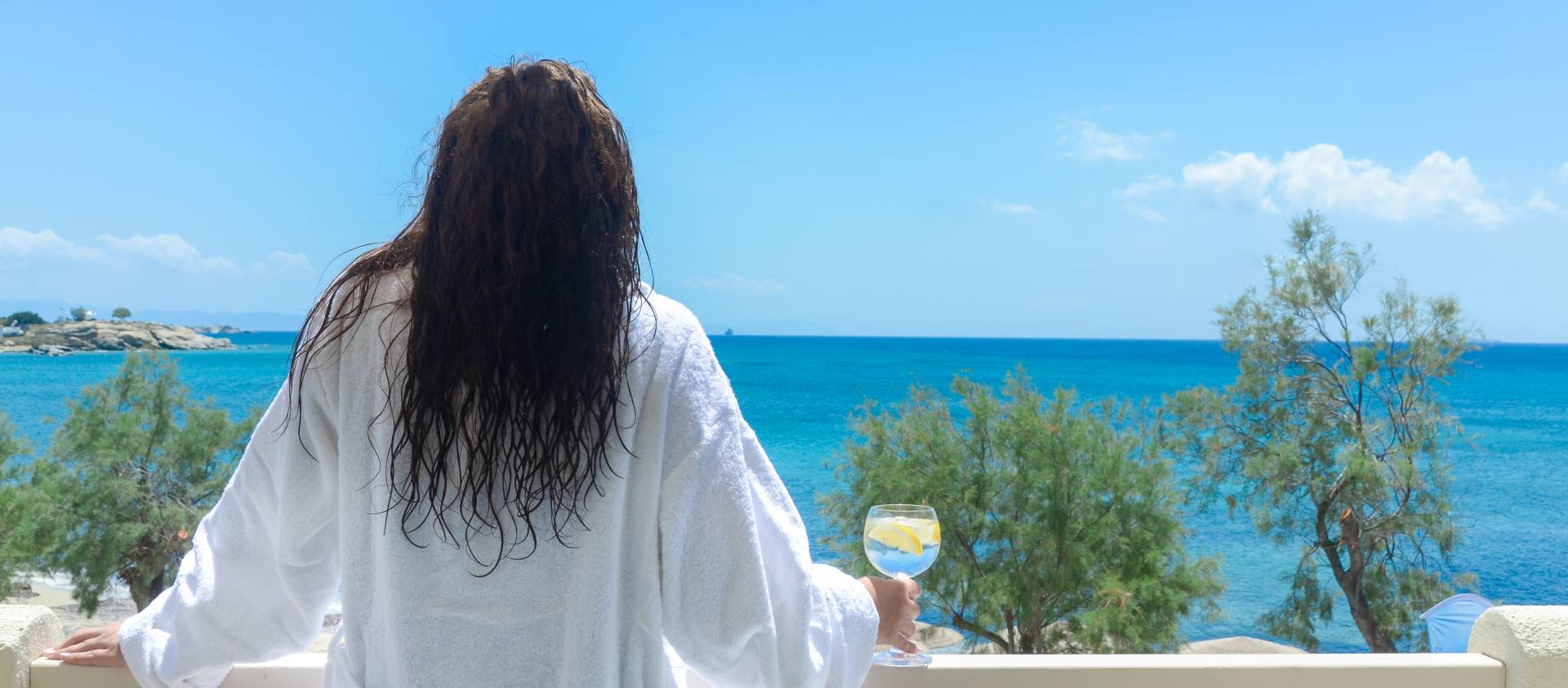 Angel Suites is a place where you can spend the whole day through. Breakfast in our cafe in front of the beach, sun tan in our loungers, snack and drink on the beach, cool moments in the crystal clear waters of Agia Anna Beach, till the evening, when the sun goes down. Magic.
